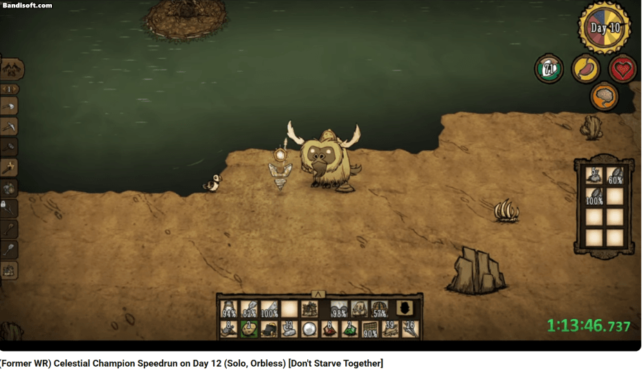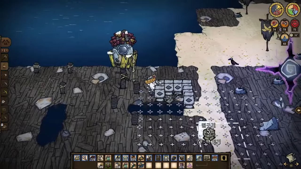 굶지마에서 유명한 글리치의 예시를 하나 들자면, 렉보정 옵션을 이용한 바다건너기가 있다.
